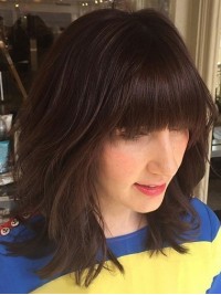 Kastanjebruine Kinlengte Krullend Kaploze Pruiken Van Echt Haar 14 Inch