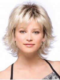Geelbruine Kinlengte Menselijk Haar Korte Kaploze Pruiken Met Pony 6 Inches