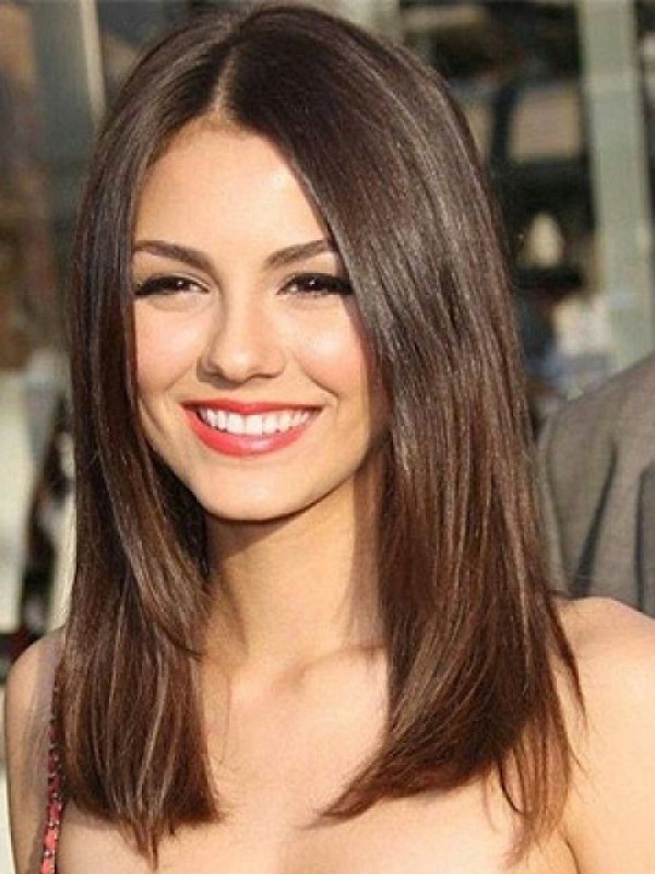 Bruine Rechte Middenscheiding Lange Pruiken Van Echt Haar Met Kanten Voorkant