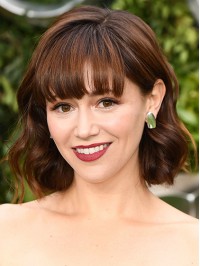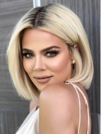 Anna Wintour Blonde Rechte Bob-Stijl Menselijke Kaploze Pruiken Met Pony 10 Inch