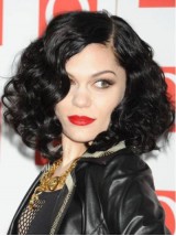 Medium Jessie J Korte Krullende Kaploze Synthetische Pruiken Met Pony Aan De Zijkant