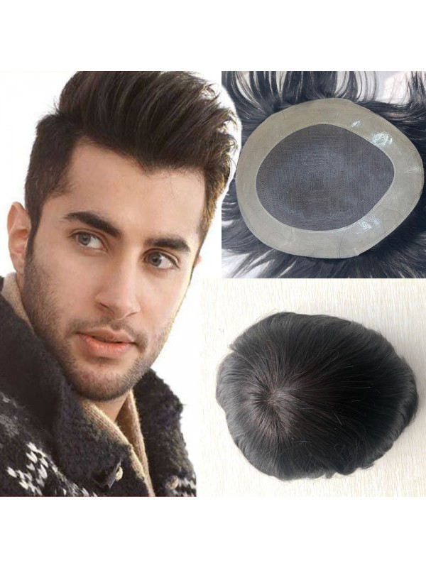 8 "x 10" Short Smooth Real Hair-Men-Toupet Mtoup201136