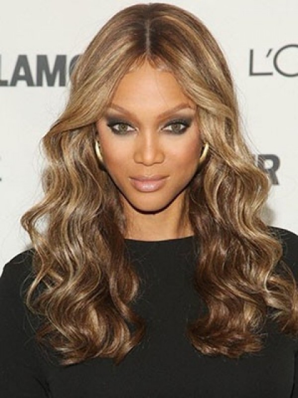 Tyra Banks Pruiken Van Echt Haar Met Middenscheiding En Lang Golvend Kant